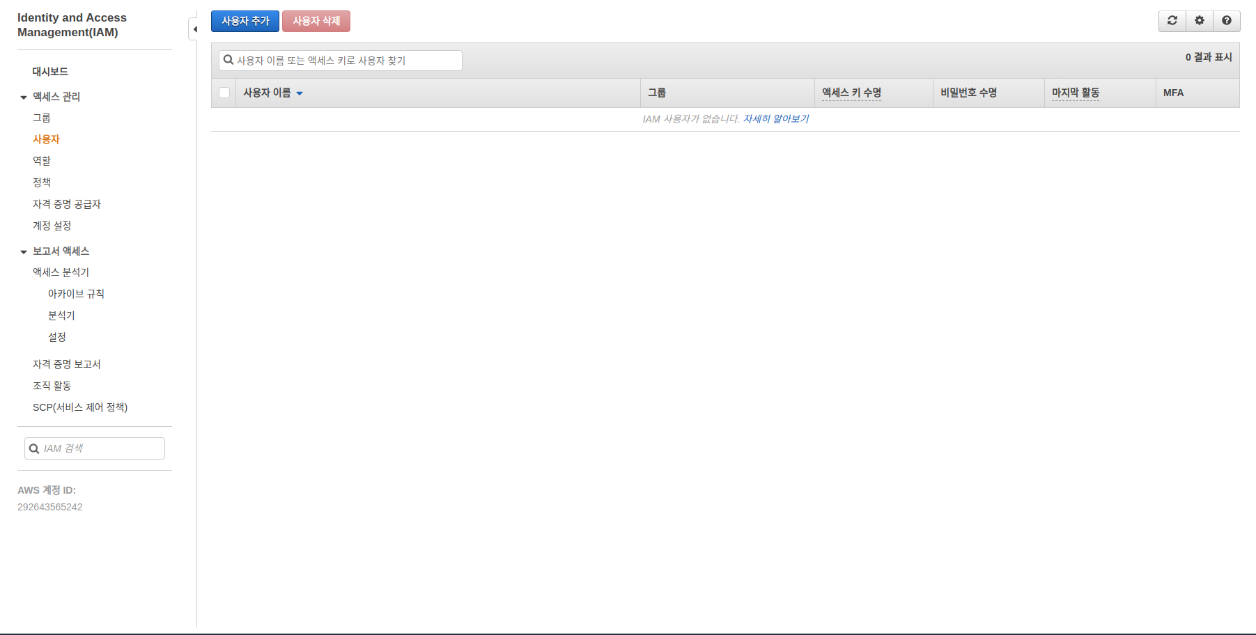 3. 서비스 -> IAM -> 사용자 -> 사용자 추가 선택