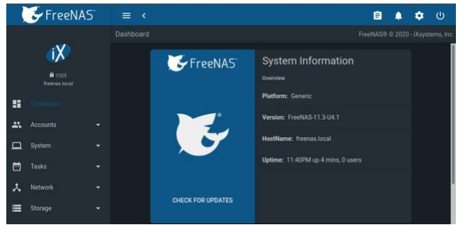 시스템 재시작후 가만히 기다리면 FreeNAS 화면이 완벽히 설치 된다.