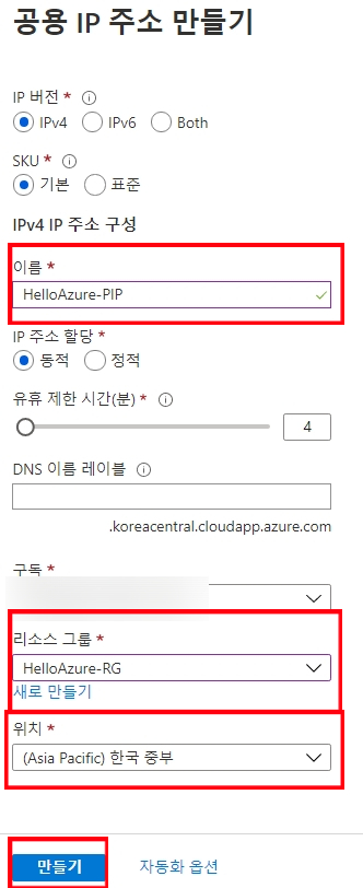 1. Azure Portal 에서 [리소스만들기] 클릭
