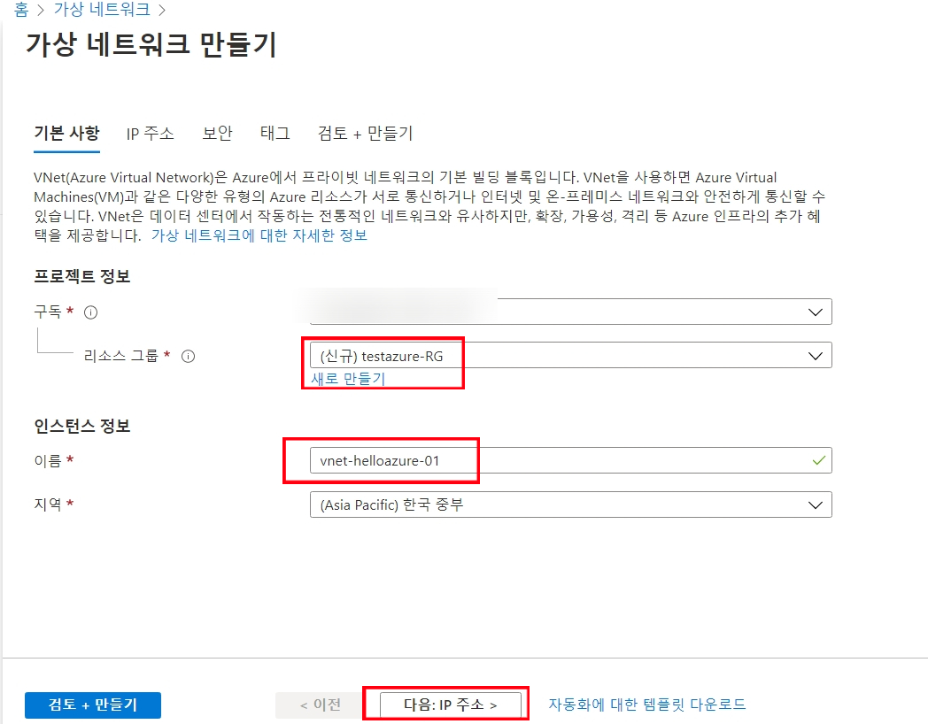 1. VNet 주소공간(CIDR)이 다른 네트워크와 겹치지 않아야 한다.