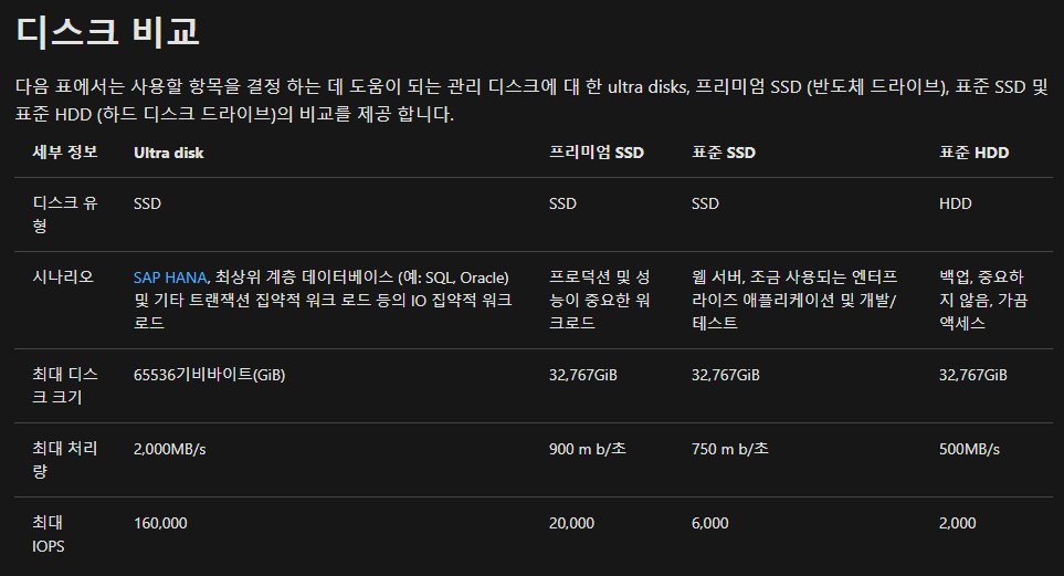 https://docs.microsoft.com/ko-kr/azure/virtual-machines/disks-types