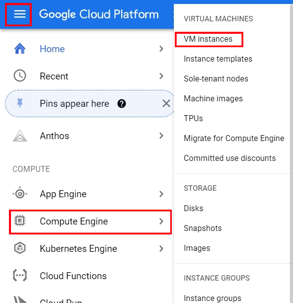 - 좌측상단 햄버거 클릭후 Compute Engine -> VM instance 클릭 -> Create 클릭