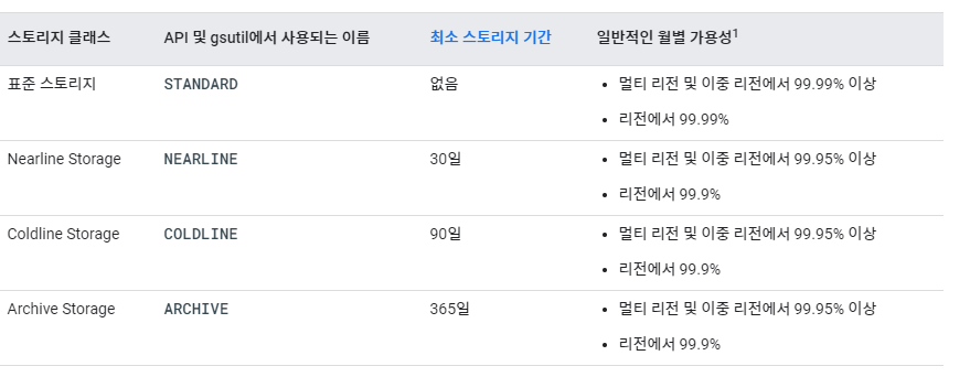 GCP에서 CloudStorage를 구성하기위해 Bucket을 만들면 Sotrage Class를 선택하게 된다.