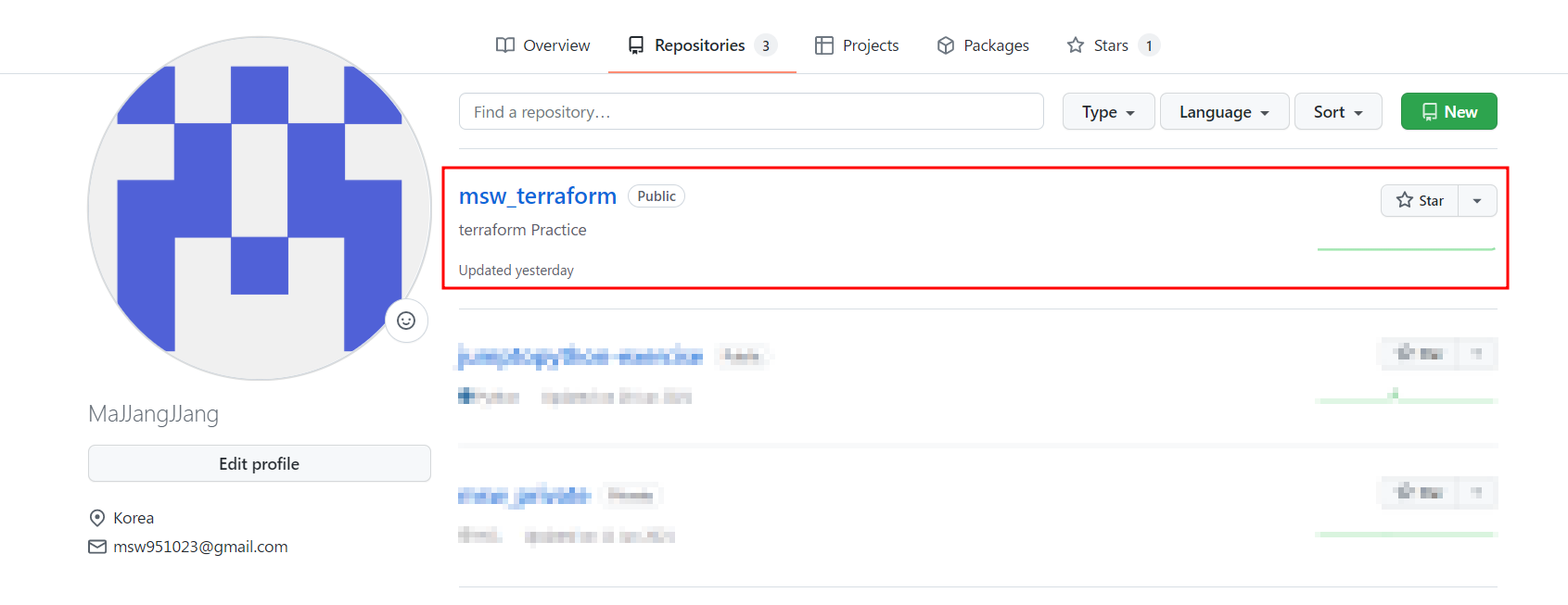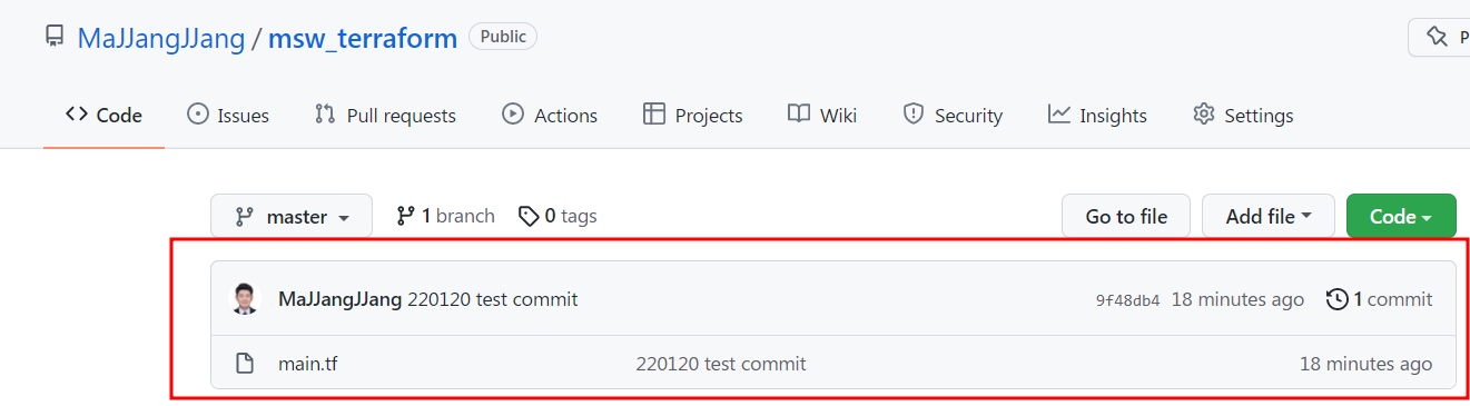 이렇게 하면 MaJJangJJang 의 msw_terraform repository를 가져올 수 있다;