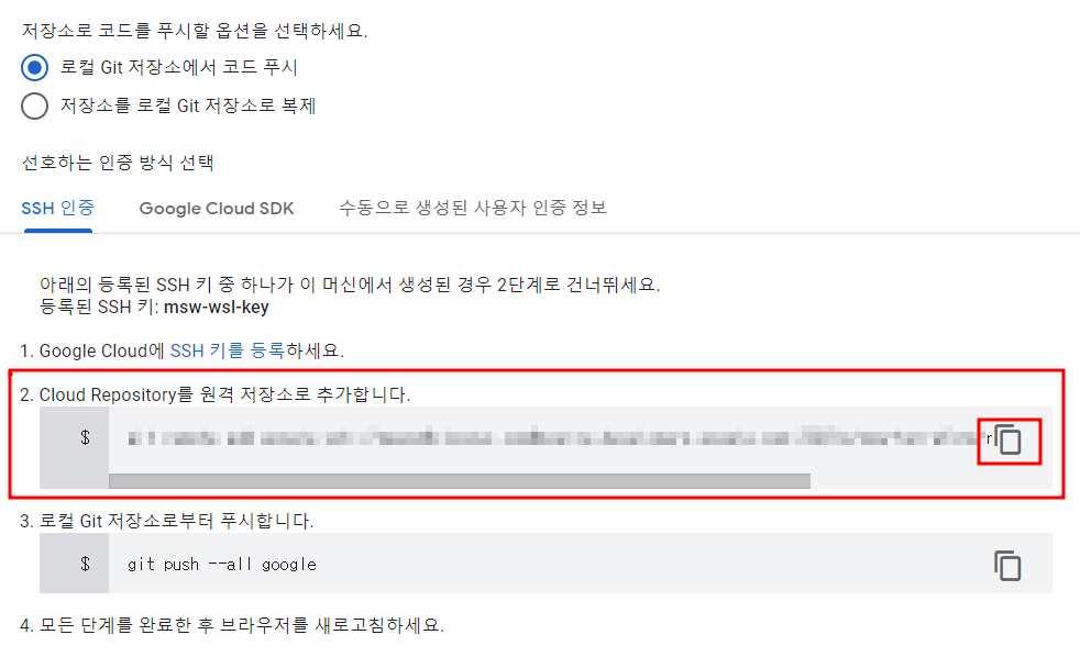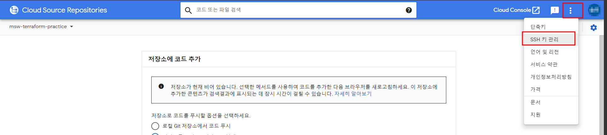 3. Cloud Source Repositories에 SSH 키 관리에 등록
