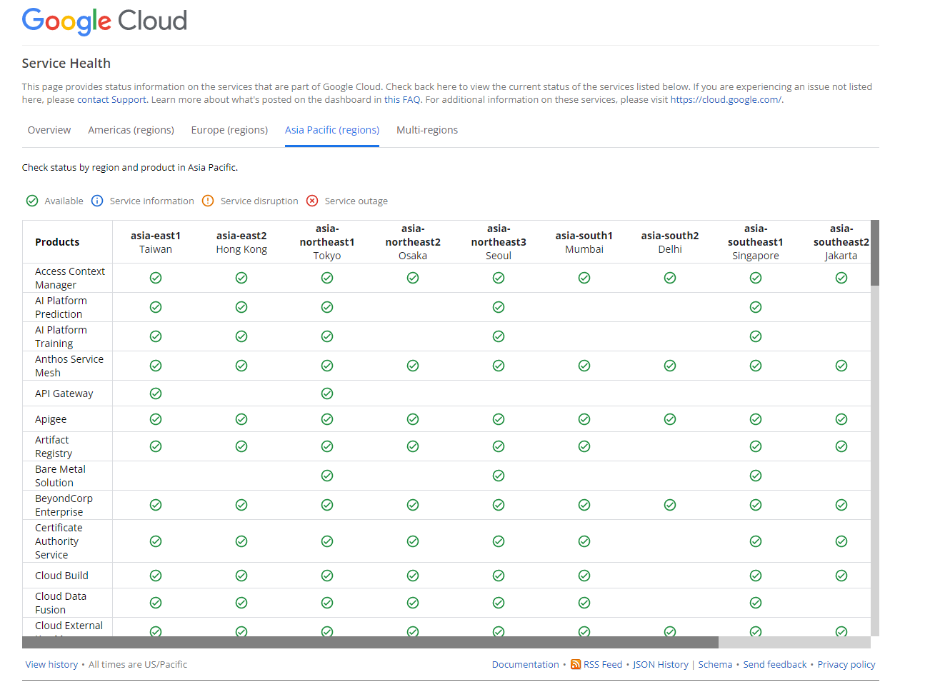 [GCP] 리전별 현재 사용 가능한 서비스 목록 및 에러 상황 확인 본문