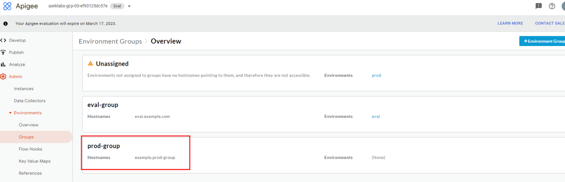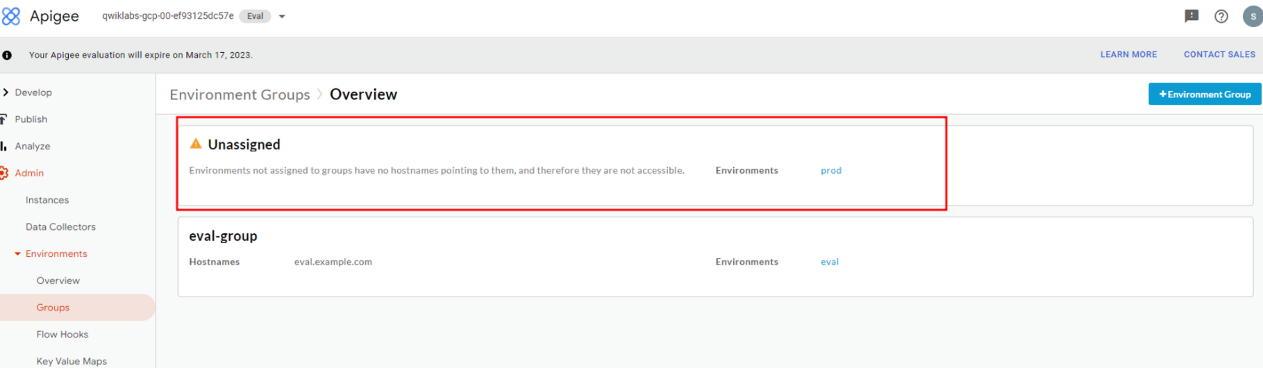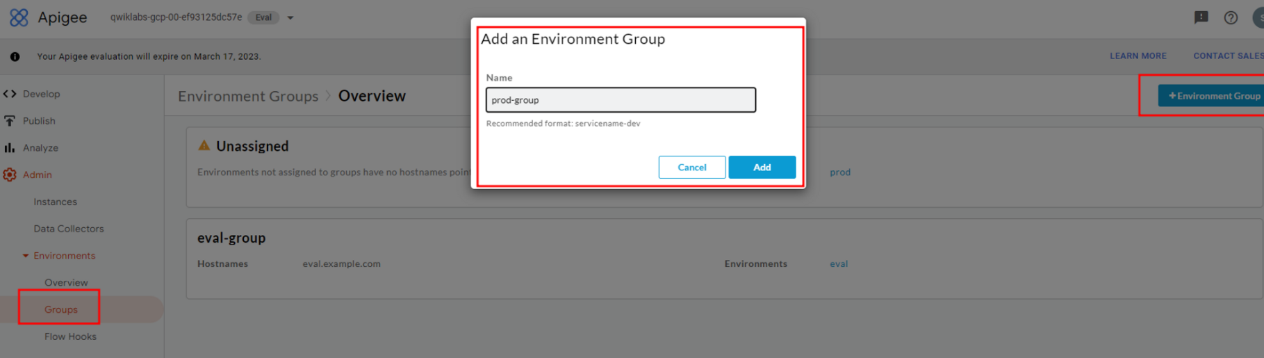 GCP SkillBoost - Adding an Apigee X Environment and Group