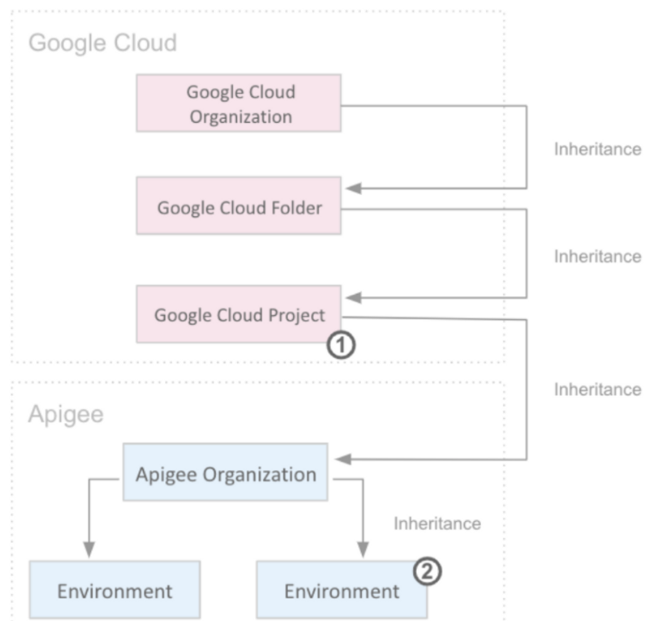 GCP User에게 Apigee Role이 할당된 경우 User는 해당 역할에서 조직 내의 모든 Apigee 리소스에 엑세스 할 수 있다. Apigee UI내에서 특정 환경의 사용자에게 Apigee 역할을 할당할 수있다. 이 권한은 프로젝트 수준에서 설정된 역할이 추가됨