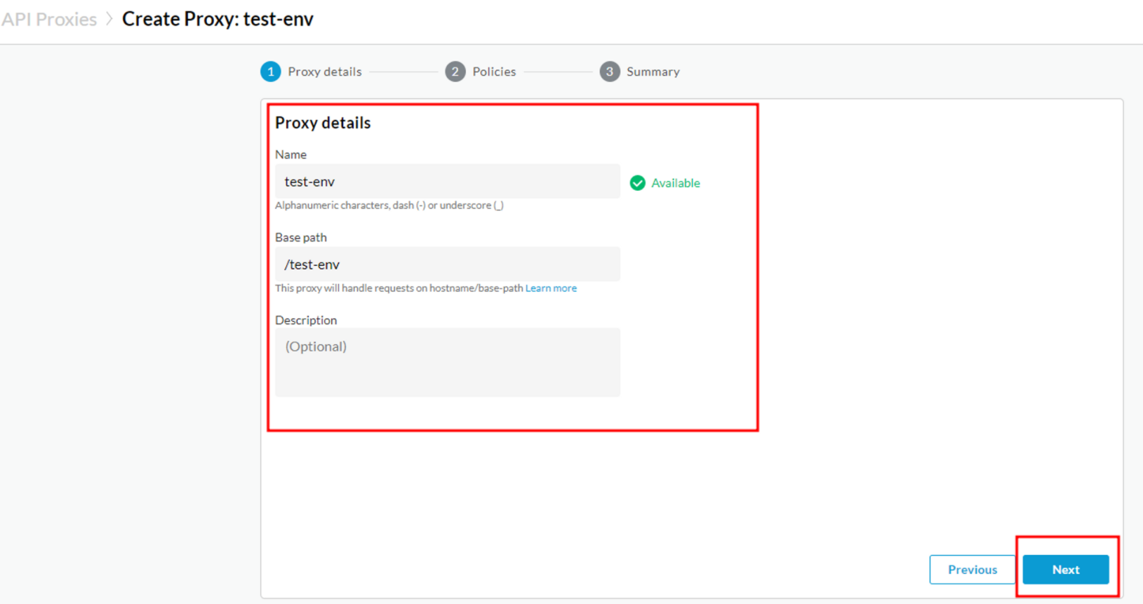 ‘test-env’ 입력