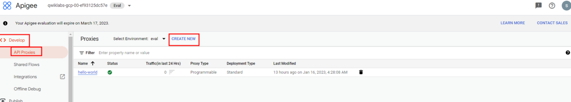 Develop - API Proxies 이동 후 create new 클릭