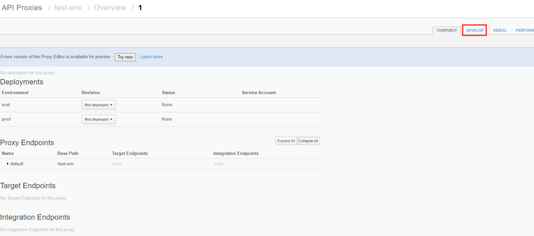 Develop - API Proxies 이동 후 create new 클릭