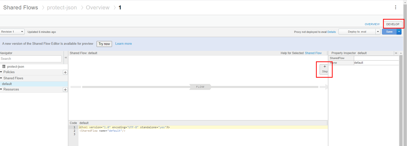 Develop - Shared Flows 에 이동하여 'Create New' 클릭