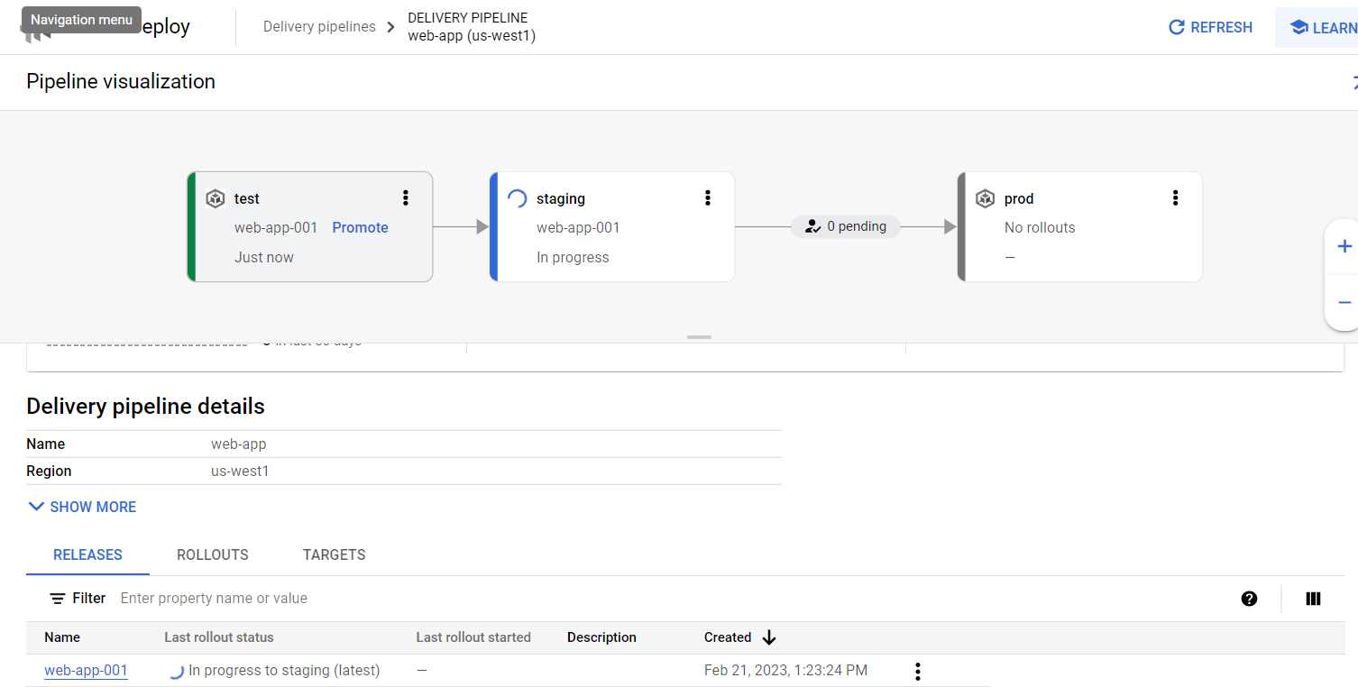delivery-pipeline.yaml을 이용하여 Cloud Deploy 생성