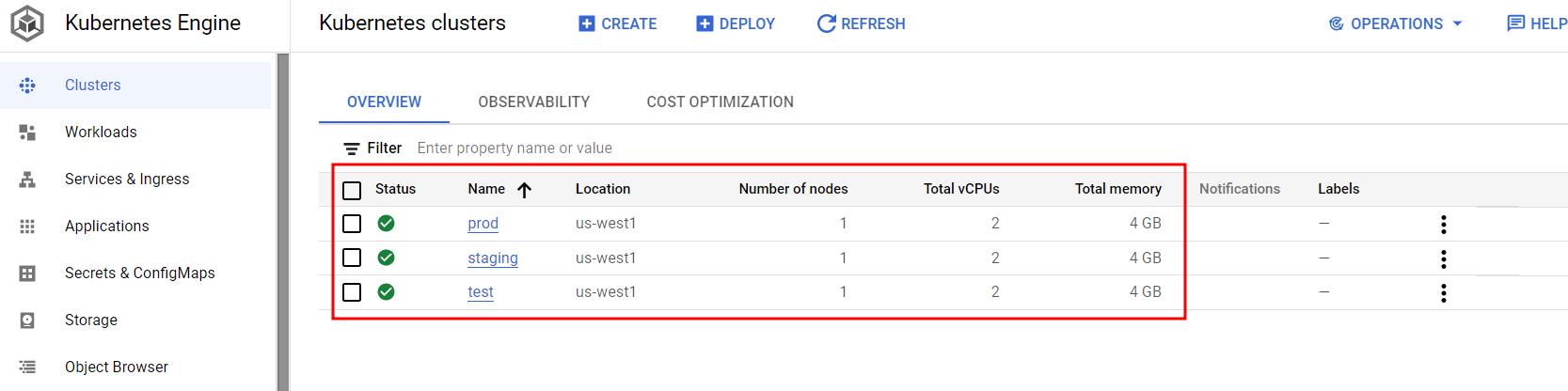 gcloud container clusters create staging --node-locations=us-west1-a --num-nodes=1 --async