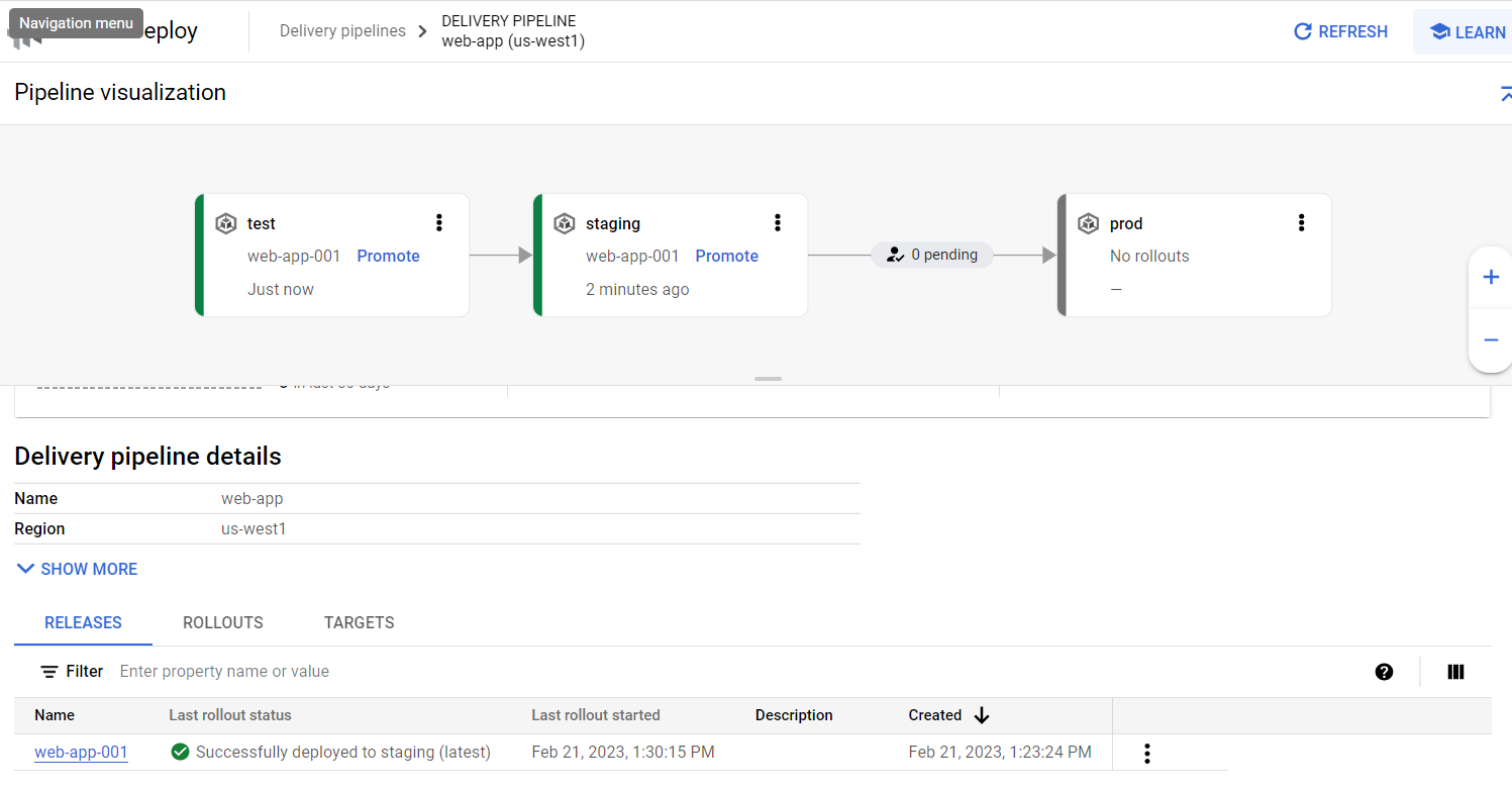 gcloud beta deploy apply --file=clouddeploy-config/delivery-pipeline.yaml