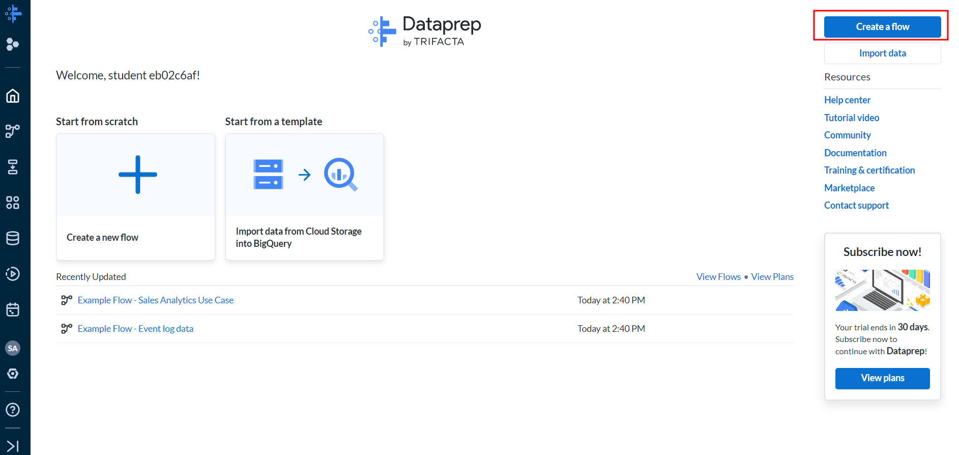 Data Prep > Create a flow 클릭