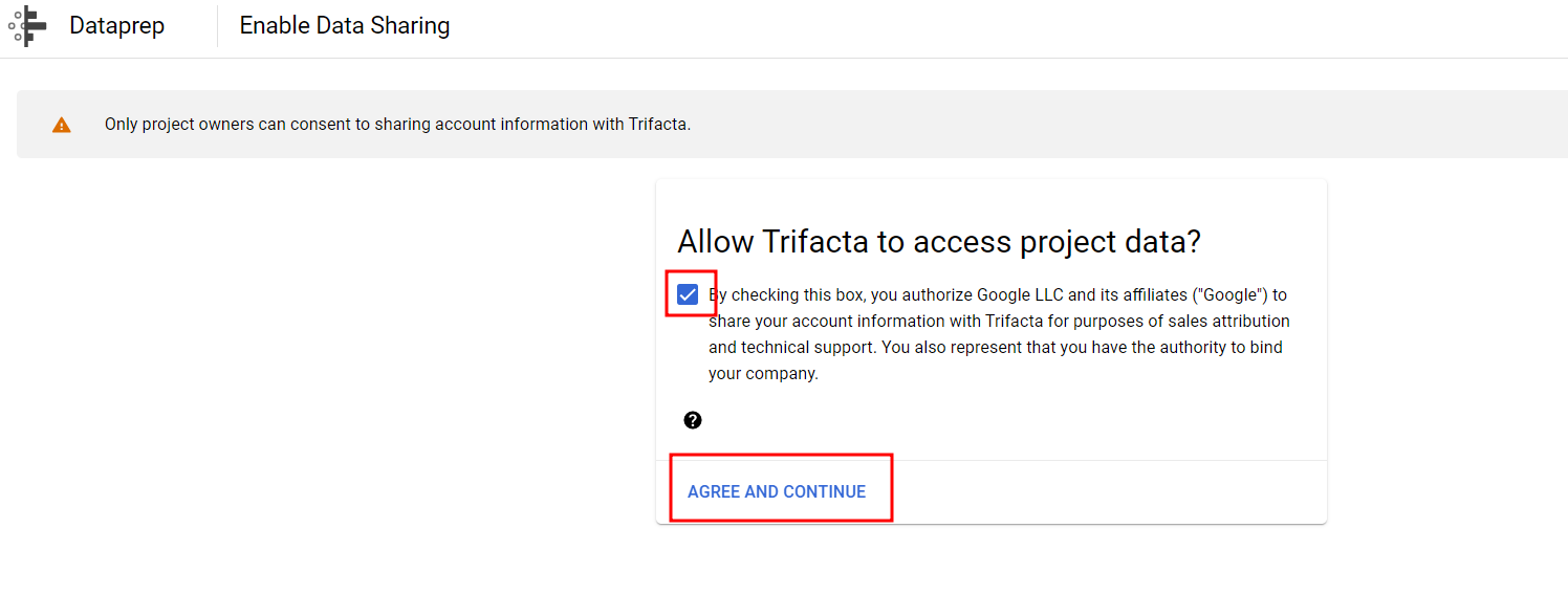 dataprep으로 이동하게되면 협업 파트너사인 Trifacta 약관 동의를 해야합니다.