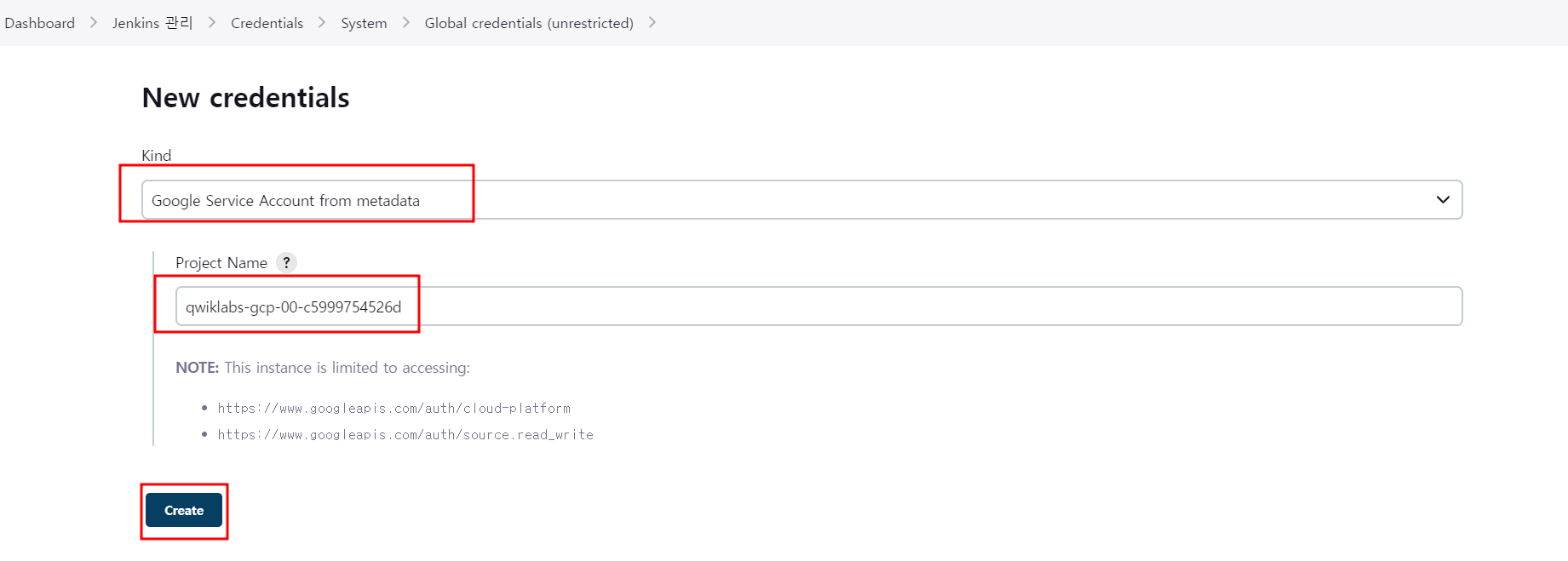 Jenkins에서 Cluster에 배포할 수 있도록 서비스계정을 구성합니다.