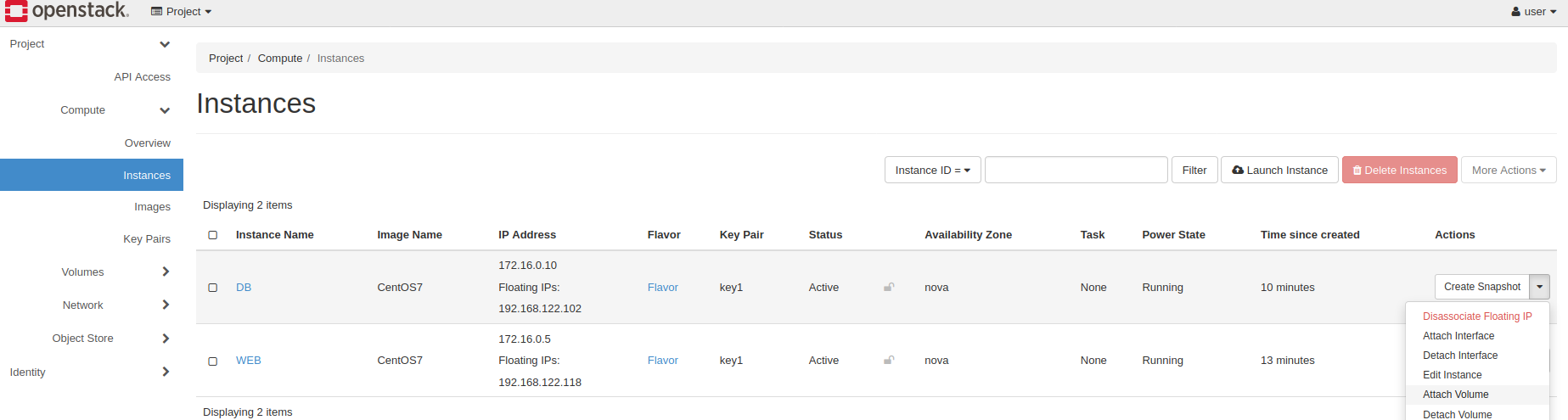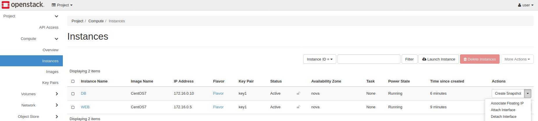 * admin , user , project 만 생성한 상태에서 진행