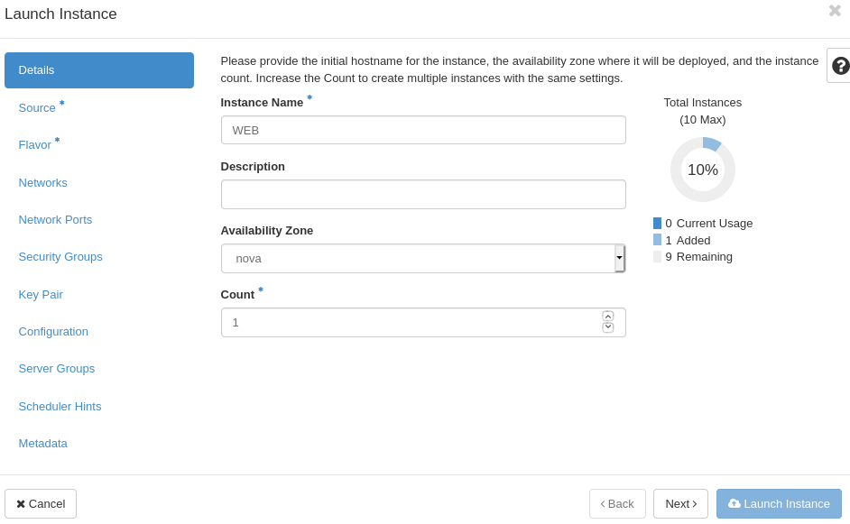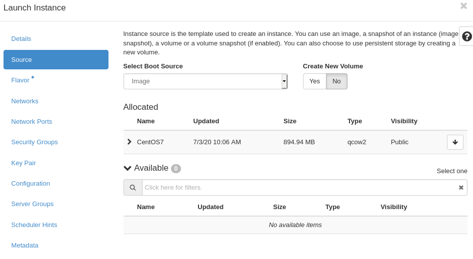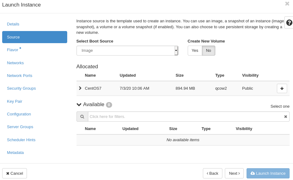 2. Flavor 설정(Admin -> Flavor -> Create Flavor)